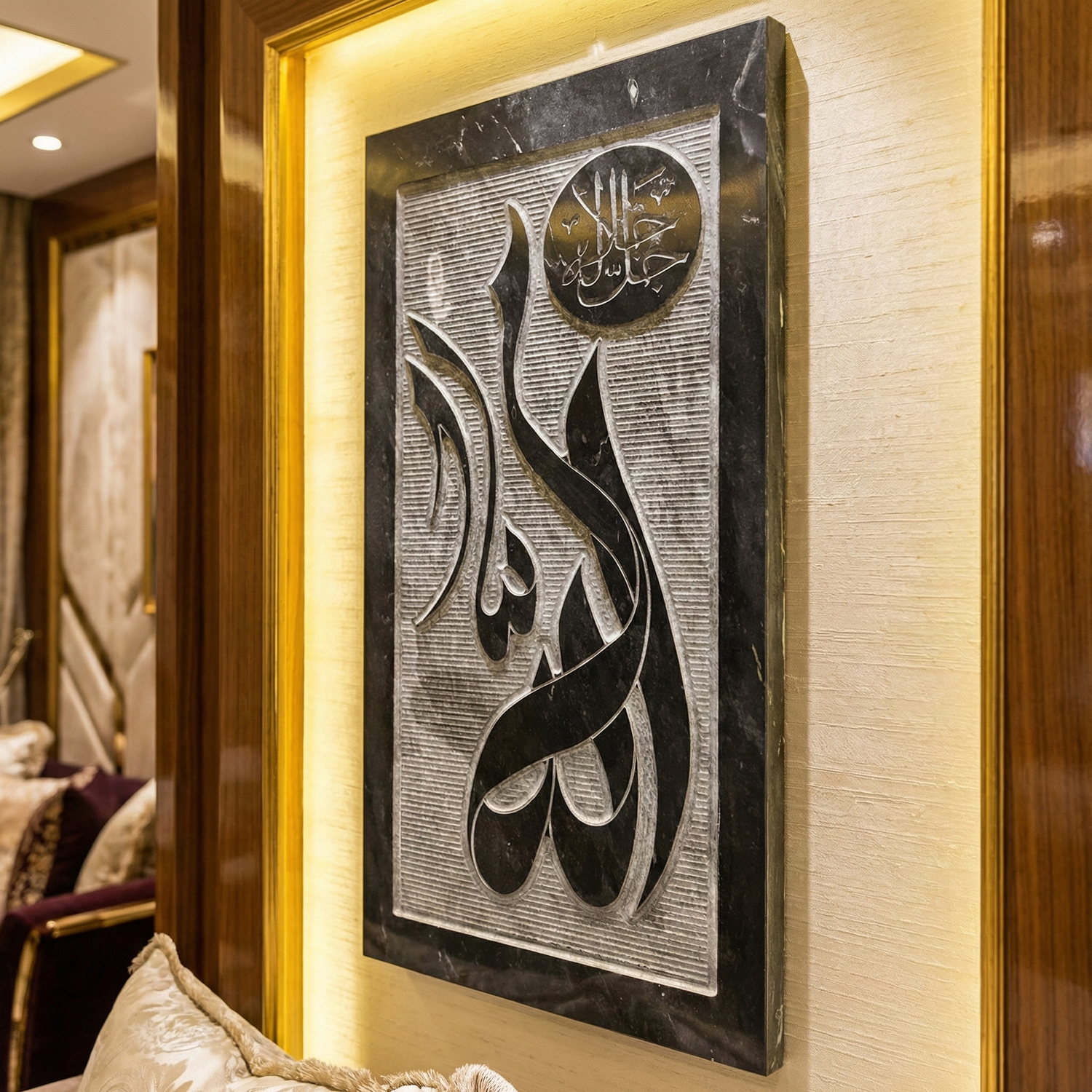 Elevate your space with this exquisite Allah calligraphy marble art, meticulously CNC-carved onto premium marble for lasting elegance. Each piece showcases intricate Islamic calligraphy with precision craftsmanship, creating a sophisticated focal point that honors spiritual heritageexcellence.